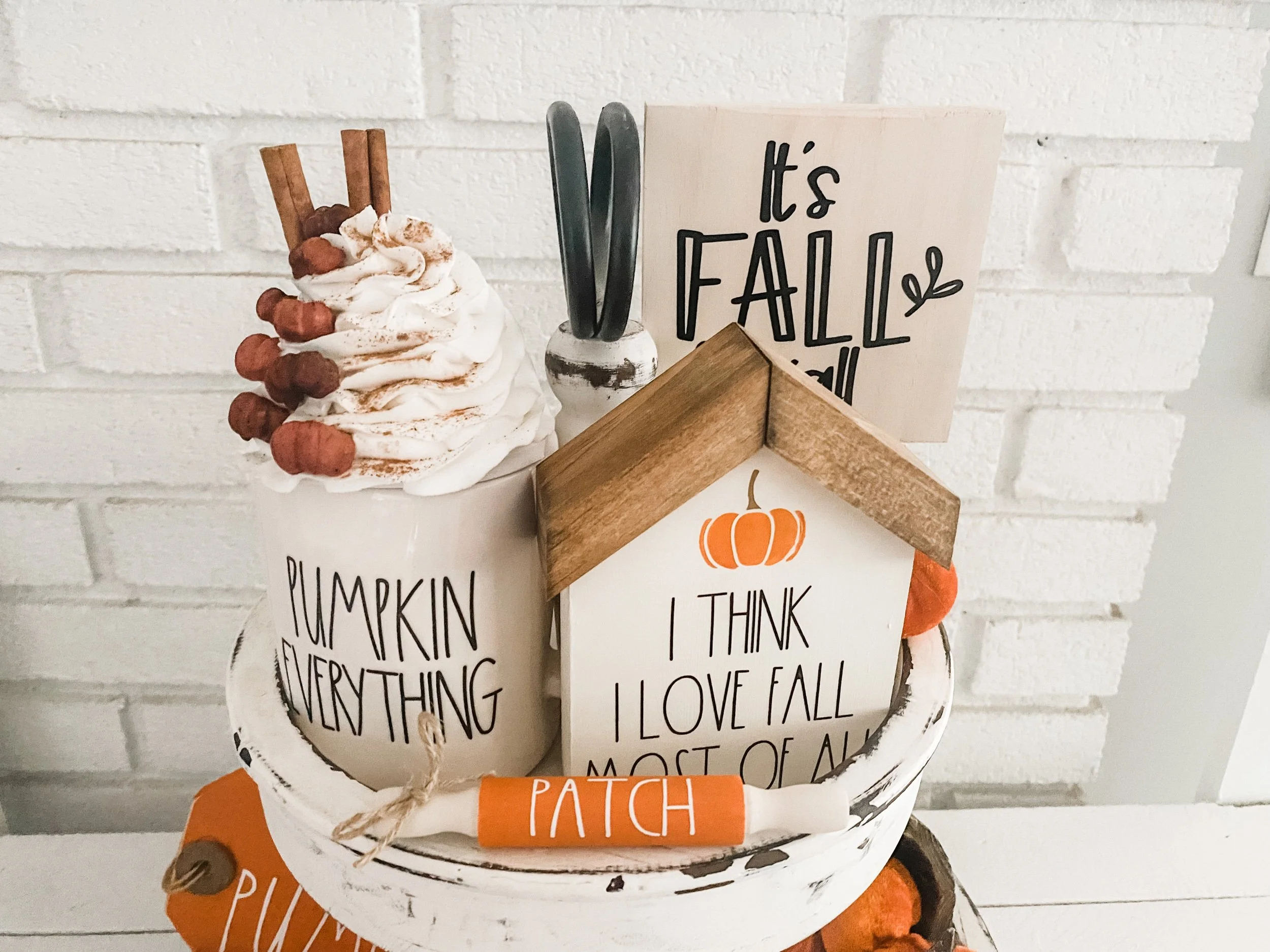 Here is our new pumpkin decor bundle. This farmhouse bundle features the colors cream and pumpkin spice. Each item was carefully chosen to fit into any farmhouse fall display!